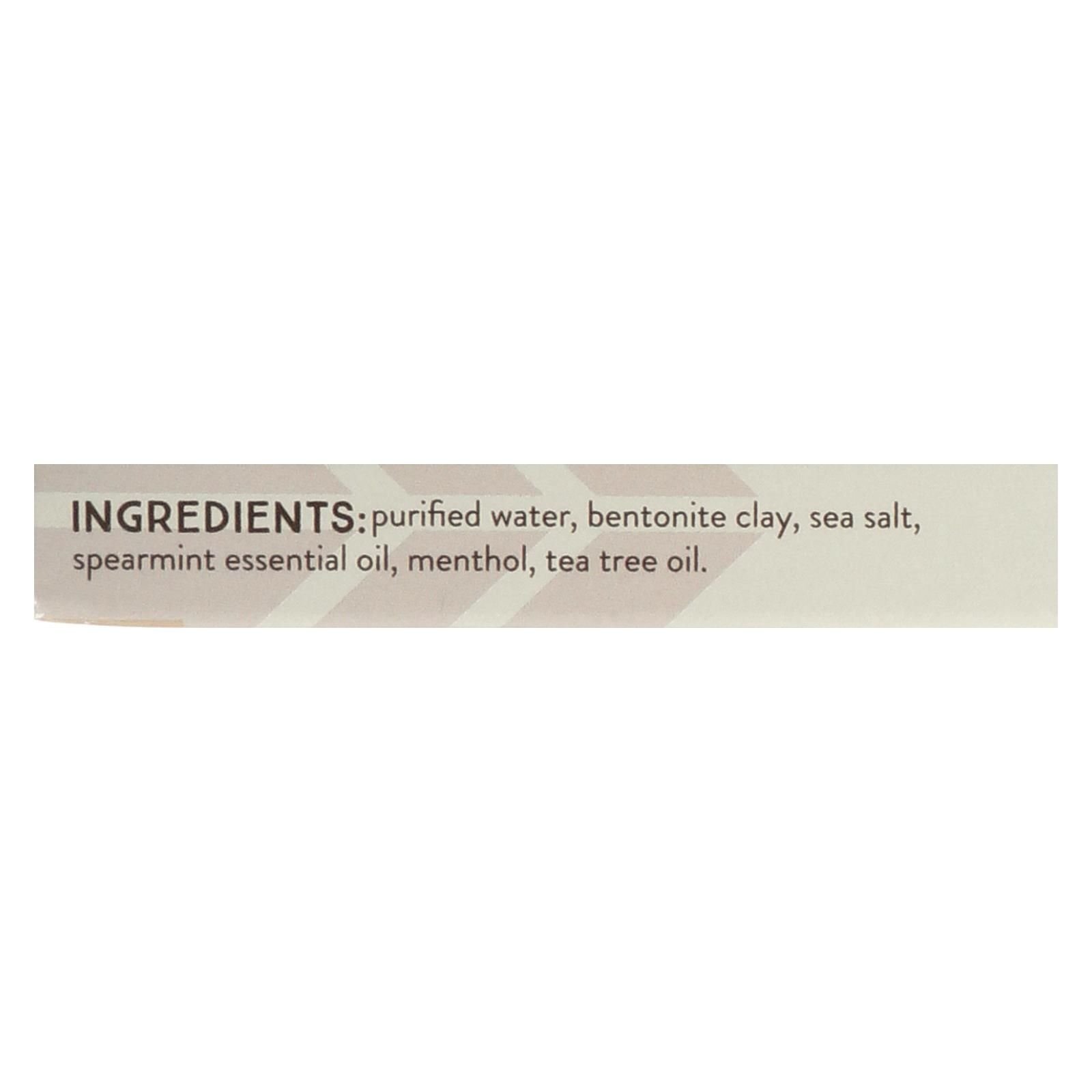 ingredients : purified water;bentonite clay;sea salt;spearmint essential oil;menthol;tea tree oil