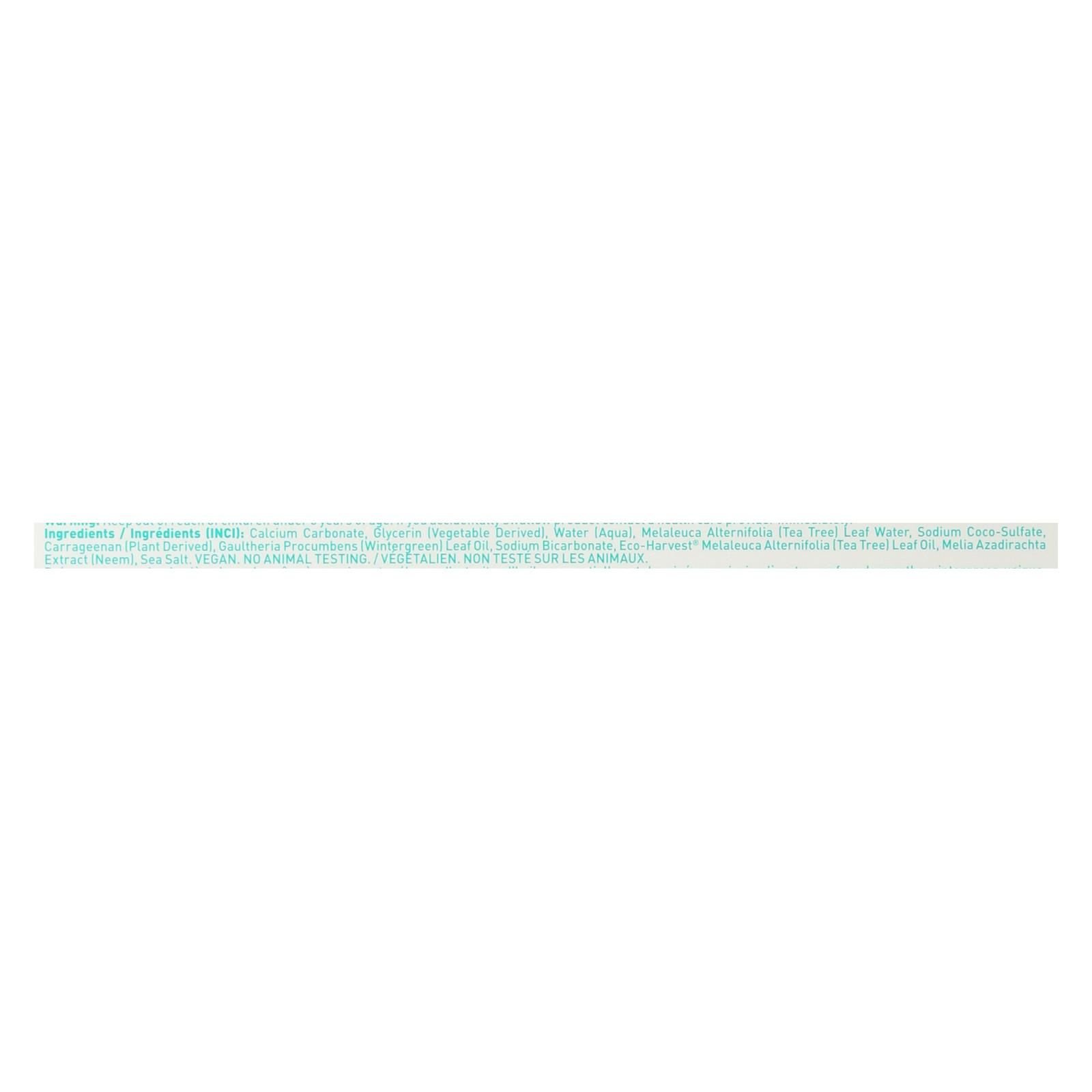 ingredients : calcium carbonate;glycerin;vegetable derived;water;aqua;melaleuca alternifolia;tea tree;leaf water;sodium coco-sulfate;carrageenan;plant derived;gaultheria procumbens;wintergreen;leaf oil;sodium bicarbonate;eco-harvest® melaleuca alternifolia;melia azadirachta extract;neem;sea salt