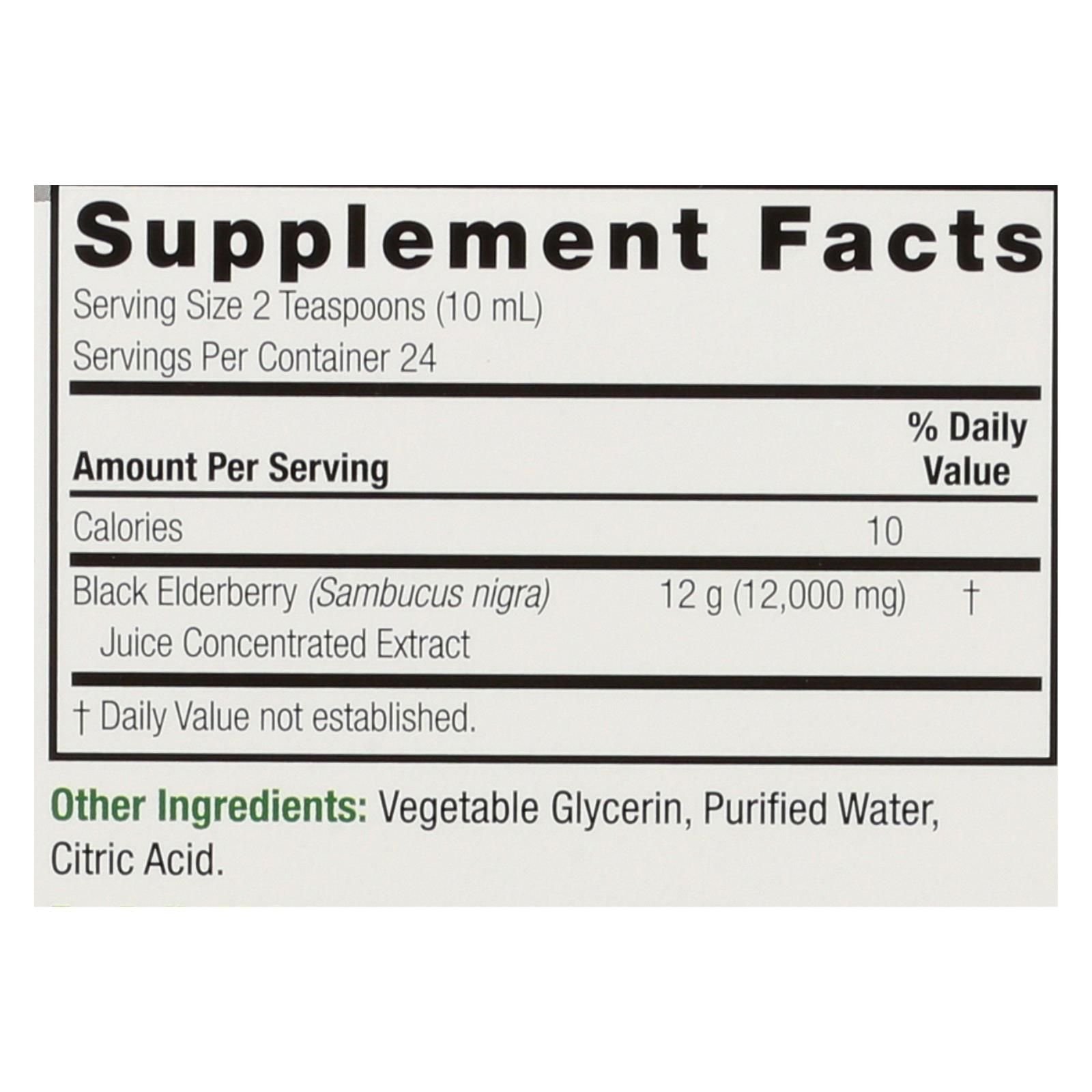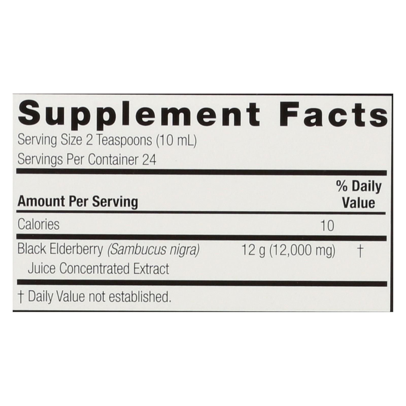 Nature's answer sambucus black elderberry extract is a highly concentrated dietary supplement you can take by the spoonful, brew with, or infuse into another beverage. This 8 fl. Oz. Container holds 24 servings, and each 2 tsp. Serving contains 10 calories and 12 g. Of sambucus nigra. This product is vegan and vegetarian-suitable.