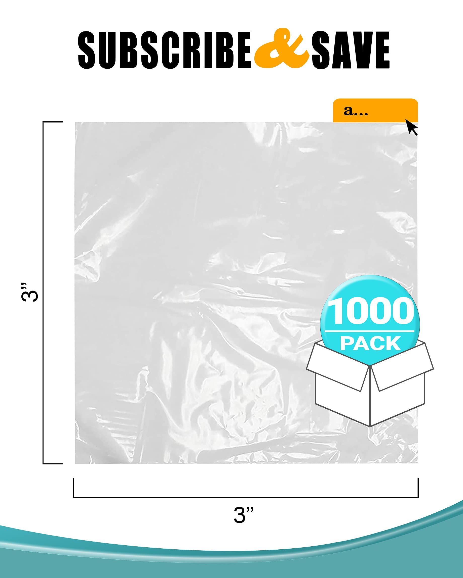 Pack of 1000 Flat Poly Bags 3 x 3. Clear Polyethylene Bags 3x3. Thickness 1.25 mil. Open Top Plastic Bags for Storing and Transporting. Ideal for Industrial, Food Service and Health Needs.