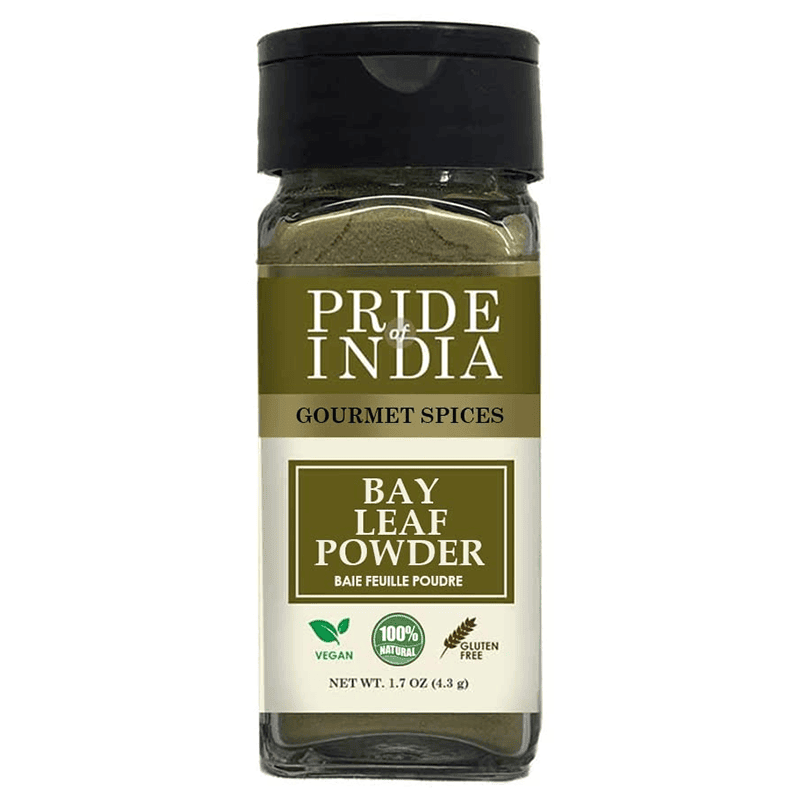 Pride of India brings New Natural Bay Leaf Powder from our premium range of pure spices is a perfect and excellent choice to add unique flavors, pleasing fragrances and make your meals even more delicious, healthful and wholesome with its uniquely distinct herbal aroma and warm flavor.
