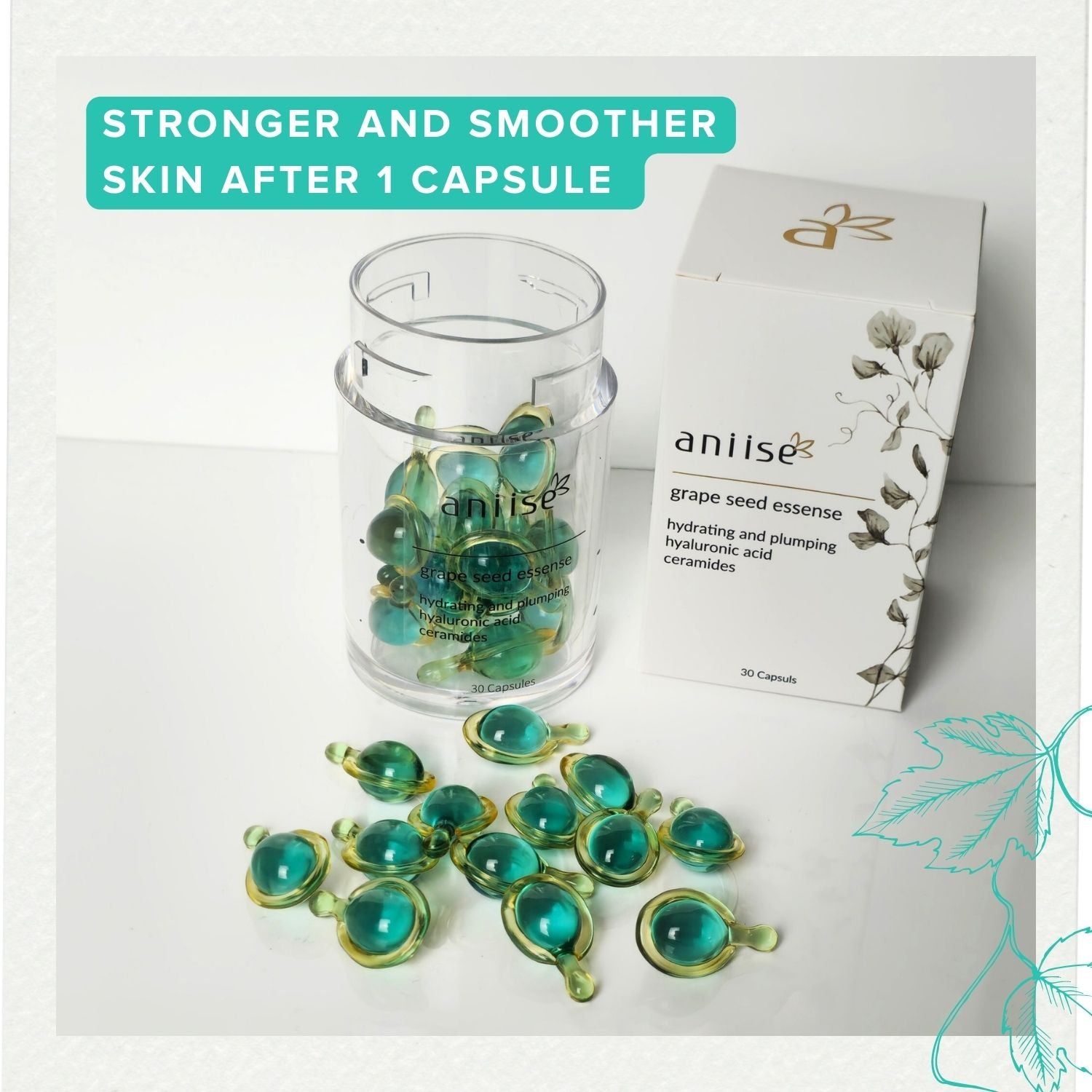 Introducing the Grape Seed Oil Ceramide Capsules — the new gold standard for skin barrier fortification, designed to nourish, refine, and restore for stronger, effortlessly radiant skin. These youth-restoring solutions are packed with powerful ingredients like Grape Seed Oil, Hyaluronic Acid, and Ceramides, making them suitable for all skin types.