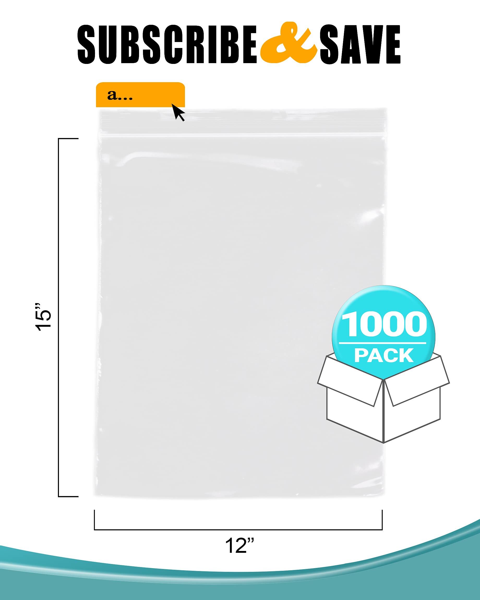 Pack of 1000 Clear Zipper Bags 12 x 15. Seal Top Polyethylene Bags 12x15. Thickness 2 mil. Plastic Poly Bags for Packing and Storing. Ideal for Indust