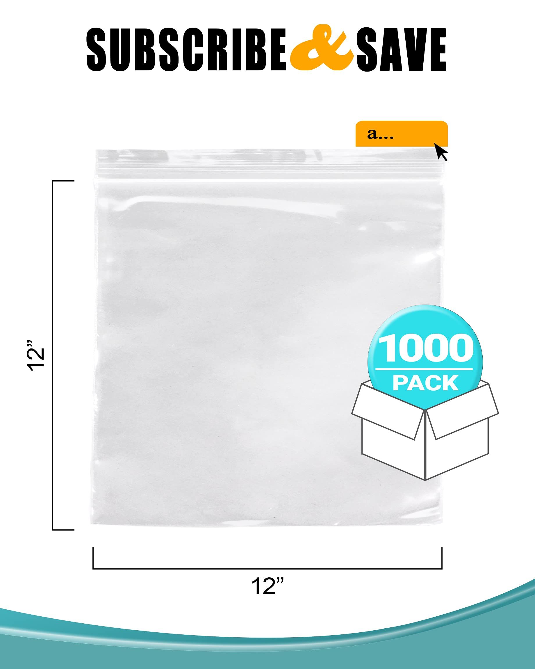 Pack of 1000 Clear Zipper Bags 12 x 12. Seal Top Polyethylene Bags 12x12. Thickness 2 mil. Plastic Poly Bags for Packing and Storing. Ideal for Indust