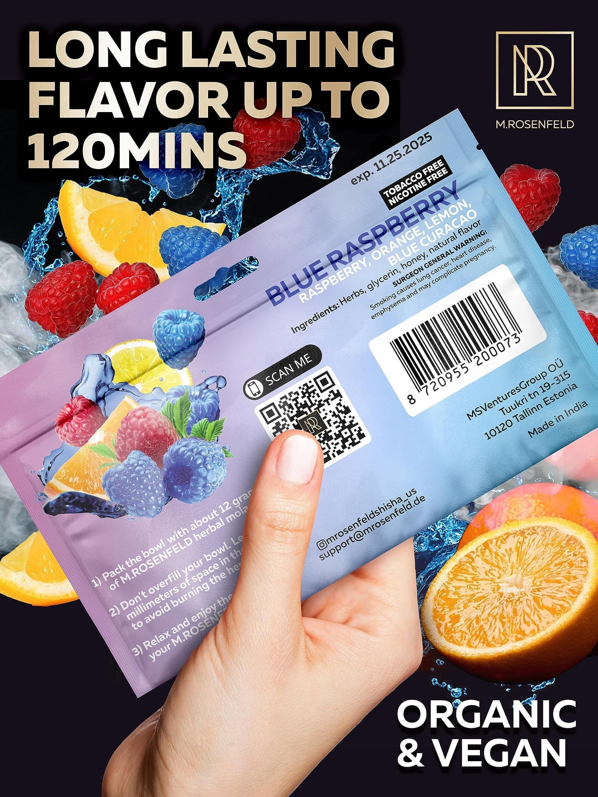 2.made from natural ingredients - sisha for hookah is manufactured with only premium shisha flavors ingredients. it's made without hookah tobacco, out of tobacco-free and nicotine-free molasses. made from mugwort, hops, beetroot, glycerin, honey, blue raspberry hookah flavor. the hookah flavor blends are applied to molasses to emulate the best hookah experience