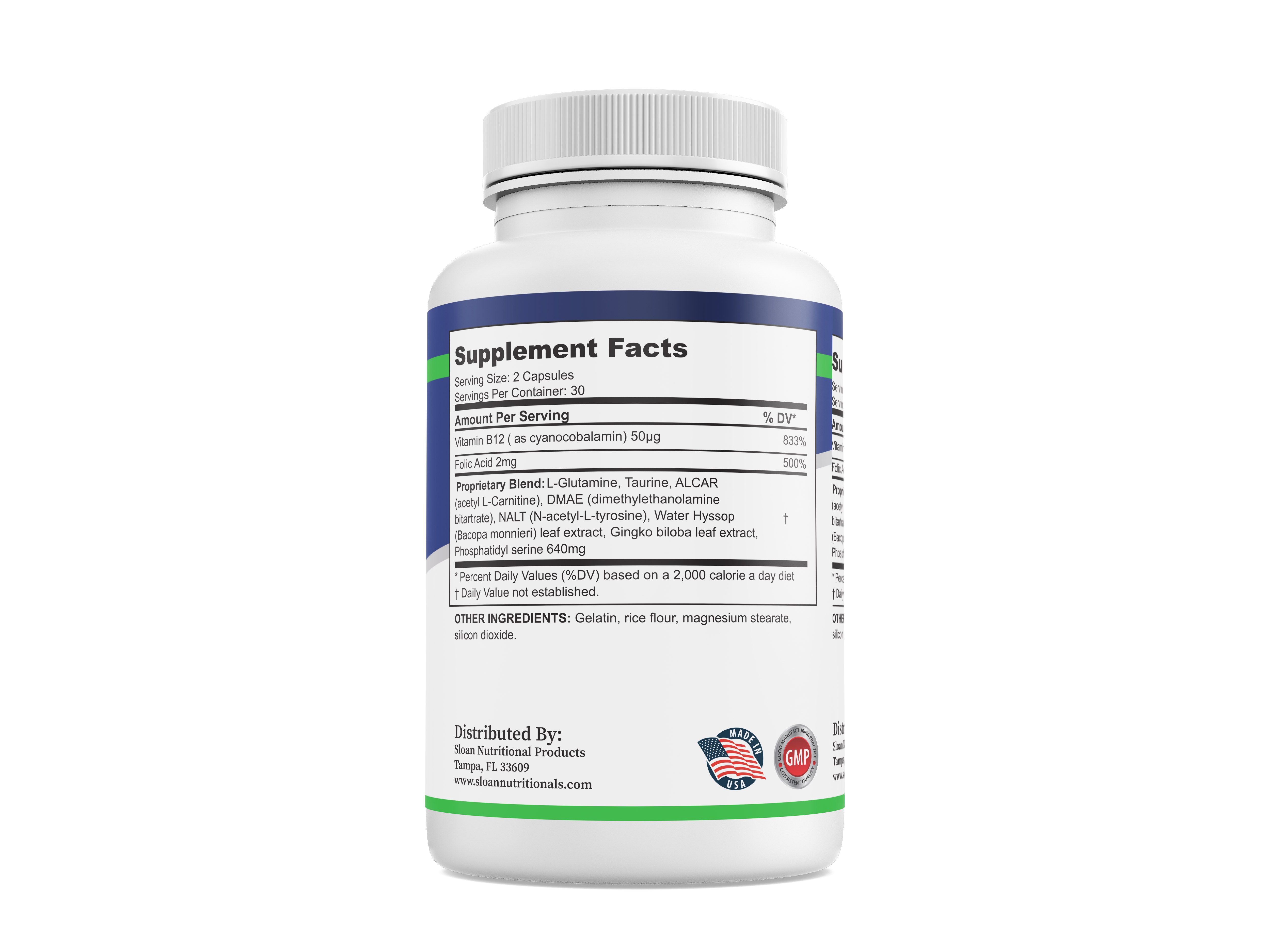 Science now shows that L-Glutamine benefits are abundant. Promoting Brain health,  a precursor to the neurotransmitter glutamate in your brain, glutamine is key to boosting your brain health. Why? A disruption of the glutamine-glutamate cycle can result in all kinds of brain problems.  Glutamine can also help stall brain aging. Mitochondrial dysfunction causes abnormal increases in the neurotransmitter glutamate and, again, puts the brain at risk for developing problems.  Taurine is an amino acid whose concentrations in the brain decline with age. Taurine protects against environmental toxins, reduces brain inflammation, and stimulates neuron formation.  Acetyl L-Carnitine (ALCAR) has several benefits for brain function, may improve focus, quicker thinking, and better recall.  Protection against dangerous toxins and support for brain energy and mitochondrial function.  May enhance overall cognitive health and overall energy levels.  DMAE (dimethylaminoethylamine) may enhance mood and memory and may boost the neurotransmitter acetylcholine.  May reduce the buildup of the 'age pigment' in the brain,linked to cognitive decline and may help to regulate functions controlled by the brain, including REM sleep.  NALT (N-Acetyl-L-Tyrosine) may support the production of catecholamines like dopamine, norepinephrine, and epinephrine, which regulate mood, cogntion, and behavior.  It may also improve Focus, Mood, and Memory enhancing blood flow to the brain and uptake of glucose and oxygen by brain cells.  Water hyssop (Bacopa Monnieri) has been found to enhance brain development and improve concentration and attention span in humans. It provides antioxidant protection to the brain and promotes normal cerebral blood flow, synaptic function, nerve transmission, and regulation of neurotransmitters such as dopamine.  Ginkgo Biloba may help to  sharpen mental clarity, and help guard the brain against age-related decline and psychiatric challenges.  May  enhance cognitive performance by increasing blood flow to the brain and Improve decision-making and concentration, especially in individuals struggling with mental fatigue.   Phosphatidylserine (PS) benefits for brain function in humans include Mood regulation: PS plays a role in mood regulation. Restorative sleep: PS is essential for optimally functioning brain cells and preserving cell integrity.  Cognitive functions: PS is involved in attention, focus, processing speed, and memory.Protection of brain cells: PS protects brain cells and helps neurotransmitters communicate more effectively.  Brain booster and mood improver: PS has the potential to offer vast benefits as a brain booster and mood improver.